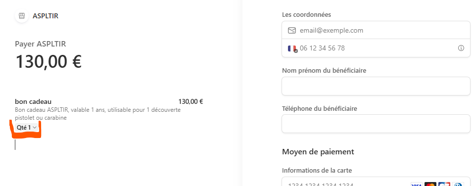 Pour utiliser le bon cadeau pour une initiation pistolet, envoyez-nous un e-mail à initiation@aspltir.fr.